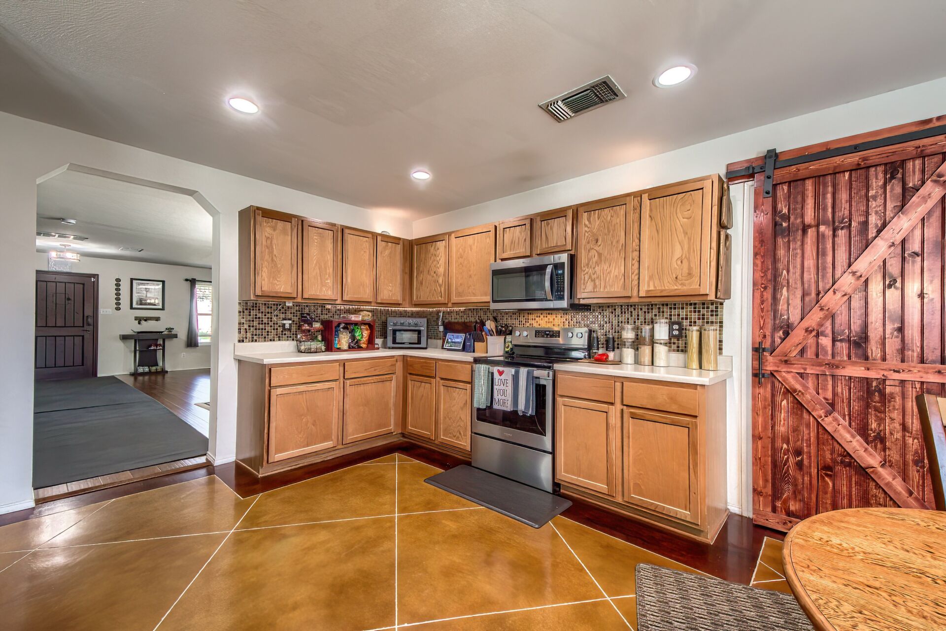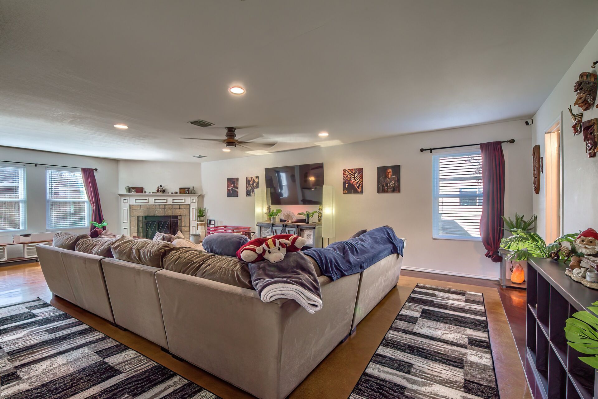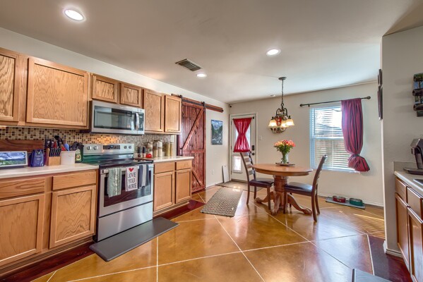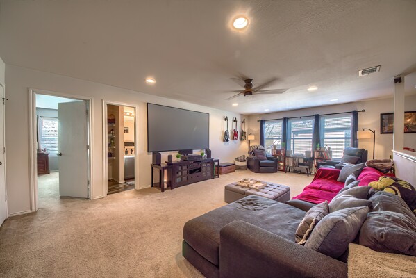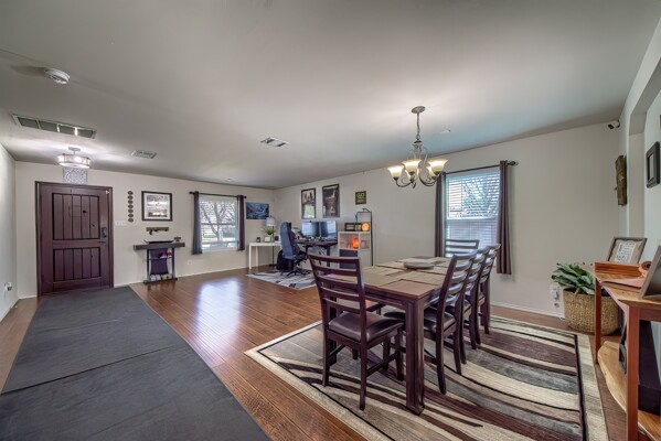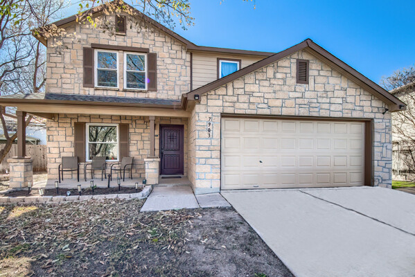 PRIDE OF OWNERSHIP IS UNDENIABLE IN THIS SPECIAL 3070 SQUARE FOOT, TWO STORY ROCK HOME IN SELMA! If four bedrooms, two dining, three living areas and a flowy floor plan aren't enough, calculate all the extras these owners have added to their lovely home in an uber-convenient pocket in northeast San Antonio and you have a winner. Beautiful energy efficient windows, a full irrigation system, 8 camera/3 panel security system, barn door accents and young HVAC are just a few of the upgrades that elevate this home above the rest. There aren't many homes that simultaneously invite the party and welcome cozy comfort but this is one. Pull up to a secluded spot at the end of a cul-de-sac to a home that beckons you in. Pause at the darling front porch, a perfect spot to watch the world go by, then step through a classy solid wood door into a spacious living/dining space that opens into the family room, kitchen and breakfast nook -- all this with wood and stained concrete floors (no carpet!). The fireplace gives a sense of atmosphere to this open space big enough for a huge sectional and overlooked by the large kitchen with its glass tile backsplash and island. Stainless appliances, including a new dishwasher, will make the chef happy, along with all the counter space. A barn door ushers entry into a massive pantry with rows of shelving, shared with the washer/dryer utility to keep all the chores in one place! Check out the attached two-car garage which offers space for more storage (as if you'd need it!). A half bath off the family room is ideal for guests. Pop up the extra wide and welcoming stairs to another amazing layout. The large (22x14ft) loft sits in the center of the space, set up now as a media room, but with lots of options for use including game room or play room. The primary suite easily accommodates a king bed and more with the lovely decorator touches of coffered ceiling and wooden barn door which leads into the ensuite bath with double sink vanity with sitting space, huge garden tub, walk-in shower, separate water closet, storage and massive walk-in closet that could not possibly leave you wanting for more space! Two other extra spacious bedrooms sit on the other end of the floor with nice closets and a shared bath with new fiberglass shower/tub combo with lots of smart shelves for bath stuff. The fourth bedroom sits off another corner of the floor for privacy and is ideal for an office space or gym. Out back you will enjoy a lush, extra large yard (thanks to the cul-de-sac) with a new privacy fence, that is level and ready for your imagination -- just add garden, pool or playscapes! The new windows through certainly help with utility bills, which for the owners, have run in the 200s and below! Better than new, this one is move-in ready. All this in quiet Retama Springs, right off Loop 1604 and I-35, making the commute to RAFB, downtown San Antonio and all the fun in New Braunfels easy. It is minutes from grocery stores and shopping at the Forum. Here is your challenge - try to find another option that offers location, size, upgrades for this price and run to offer on this one!