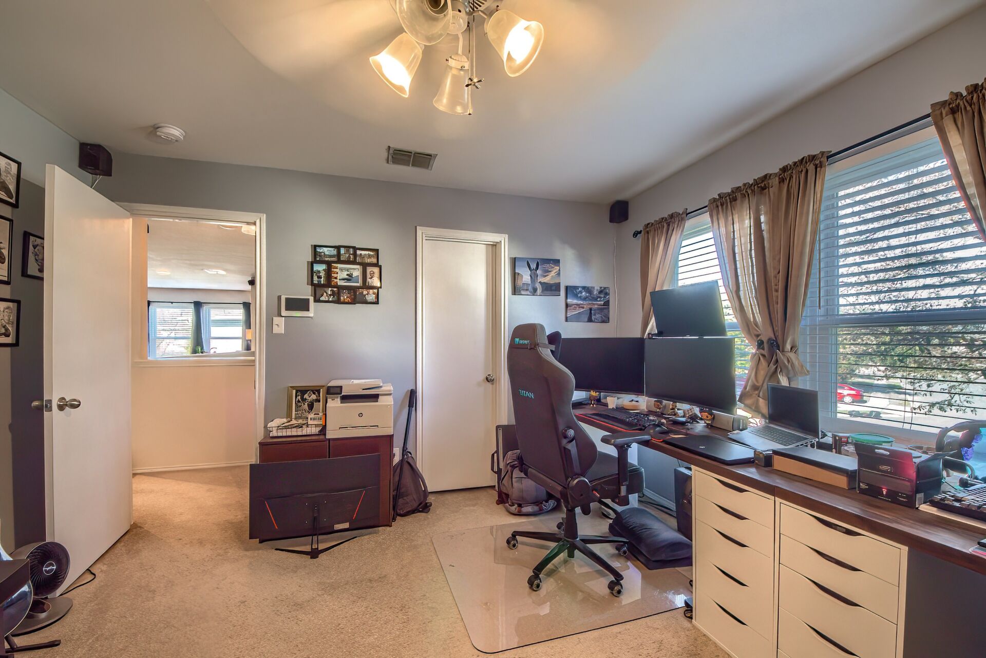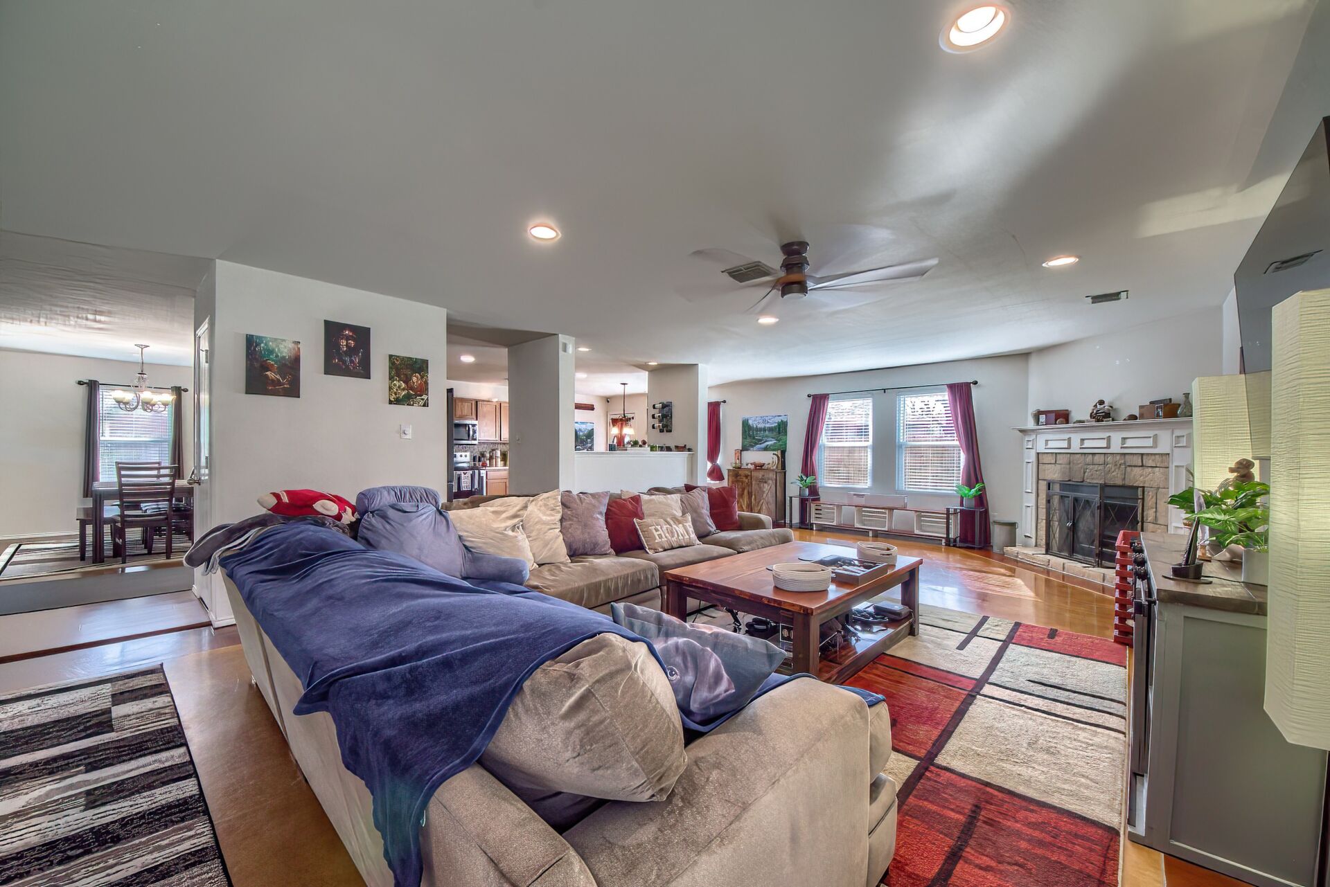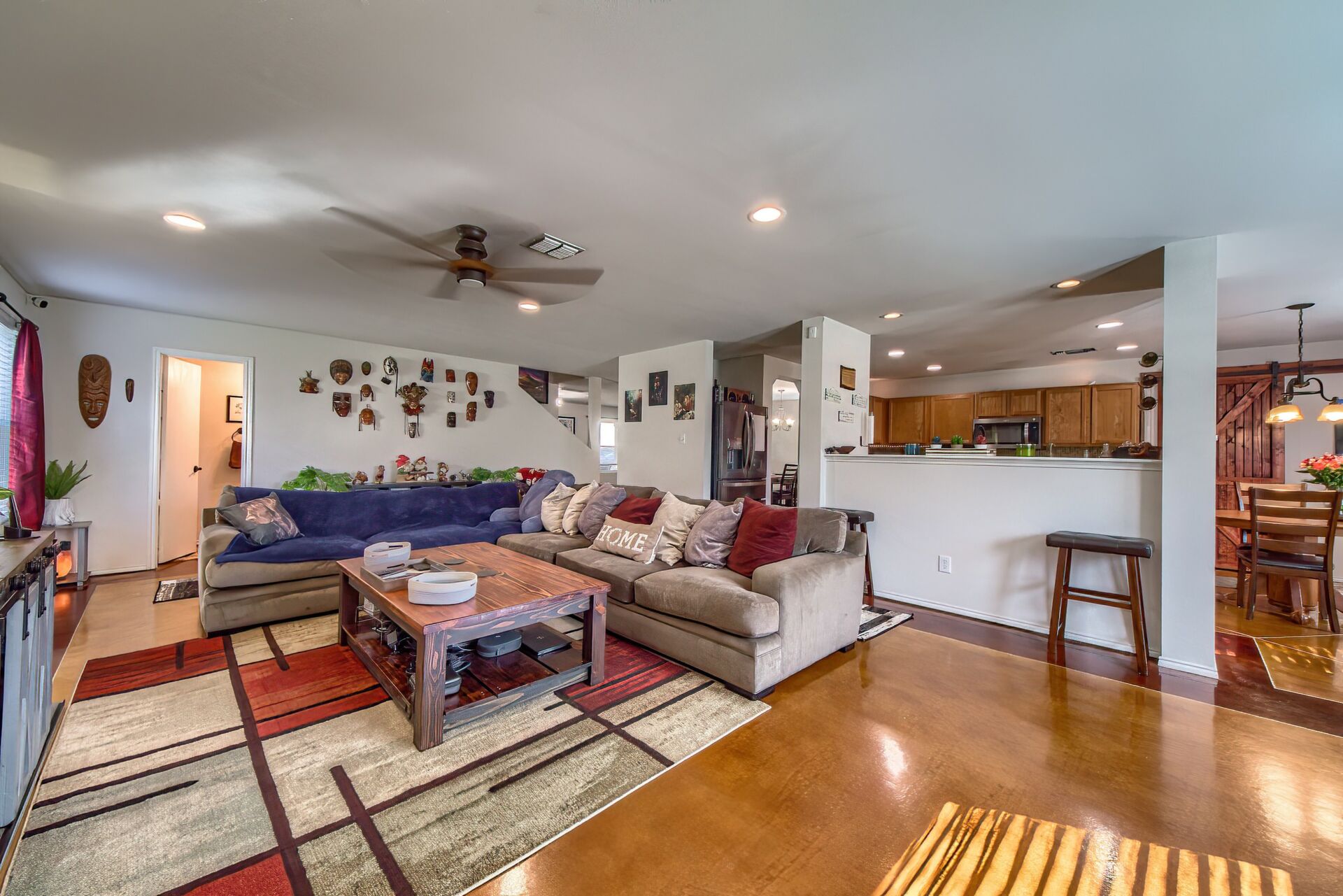 PRIDE OF OWNERSHIP IS UNDENIABLE IN THIS SPECIAL 3070 SQUARE FOOT, TWO STORY ROCK HOME IN SELMA! If four bedrooms, two dining, three living areas and a flowy floor plan aren't enough, calculate all the extras these owners have added to their lovely home in an uber-convenient pocket in northeast San Antonio and you have a winner. Beautiful energy efficient windows, a full irrigation system, 8 camera/3 panel security system, barn door accents and young HVAC are just a few of the upgrades that elevate this home above the rest. There aren't many homes that simultaneously invite the party and welcome cozy comfort but this is one. Pull up to a secluded spot at the end of a cul-de-sac to a home that beckons you in. Pause at the darling front porch, a perfect spot to watch the world go by, then step through a classy solid wood door into a spacious living/dining space that opens into the family room, kitchen and breakfast nook -- all this with wood and stained concrete floors (no carpet!). The fireplace gives a sense of atmosphere to this open space big enough for a huge sectional and overlooked by the large kitchen with its glass tile backsplash and island. Stainless appliances, including a new dishwasher, will make the chef happy, along with all the counter space. A barn door ushers entry into a massive pantry with rows of shelving, shared with the washer/dryer utility to keep all the chores in one place! Check out the attached two-car garage which offers space for more storage (as if you'd need it!). A half bath off the family room is ideal for guests. Pop up the extra wide and welcoming stairs to another amazing layout. The large (22x14ft) loft sits in the center of the space, set up now as a media room, but with lots of options for use including game room or play room. The primary suite easily accommodates a king bed and more with the lovely decorator touches of coffered ceiling and wooden barn door which leads into the ensuite bath with double sink vanity with sitting space, huge garden tub, walk-in shower, separate water closet, storage and massive walk-in closet that could not possibly leave you wanting for more space! Two other extra spacious bedrooms sit on the other end of the floor with nice closets and a shared bath with new fiberglass shower/tub combo with lots of smart shelves for bath stuff. The fourth bedroom sits off another corner of the floor for privacy and is ideal for an office space or gym. Out back you will enjoy a lush, extra large yard (thanks to the cul-de-sac) with a new privacy fence, that is level and ready for your imagination -- just add garden, pool or playscapes! The new windows through certainly help with utility bills, which for the owners, have run in the 200s and below! Better than new, this one is move-in ready. All this in quiet Retama Springs, right off Loop 1604 and I-35, making the commute to RAFB, downtown San Antonio and all the fun in New Braunfels easy. It is minutes from grocery stores and shopping at the Forum. Here is your challenge - try to find another option that offers location, size, upgrades for this price and run to offer on this one!